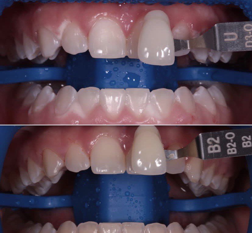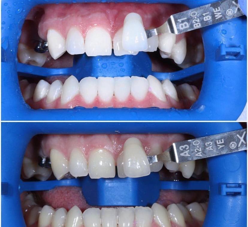 и было немного больно накусывать на два из них .Коронки поставил циркониевые ,а мост обратно ставить не стали ,зубы давно под ним и лучше их разгрузить ,поэтому посередине поставили имплант Straumann ,Константин Витальевич его советовал ,думаю что швейцарское качество не подведёт ) Сверху импланта тоже зуб из циркония .